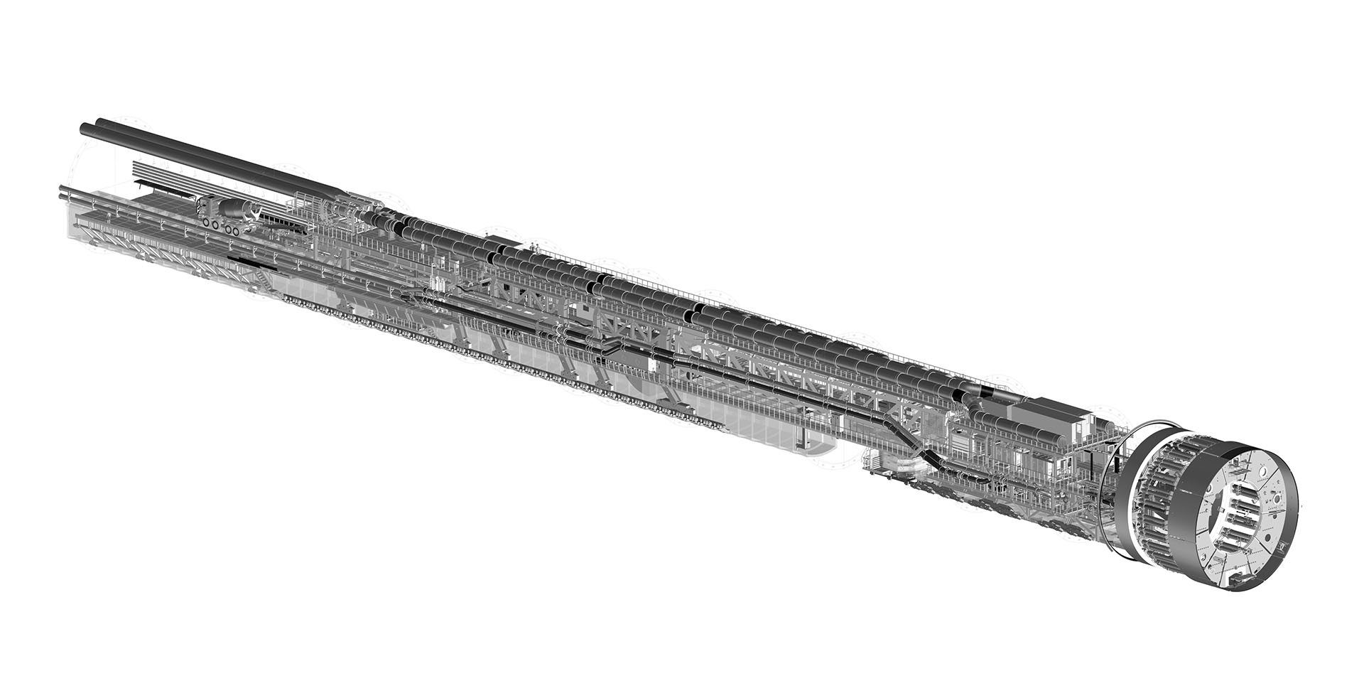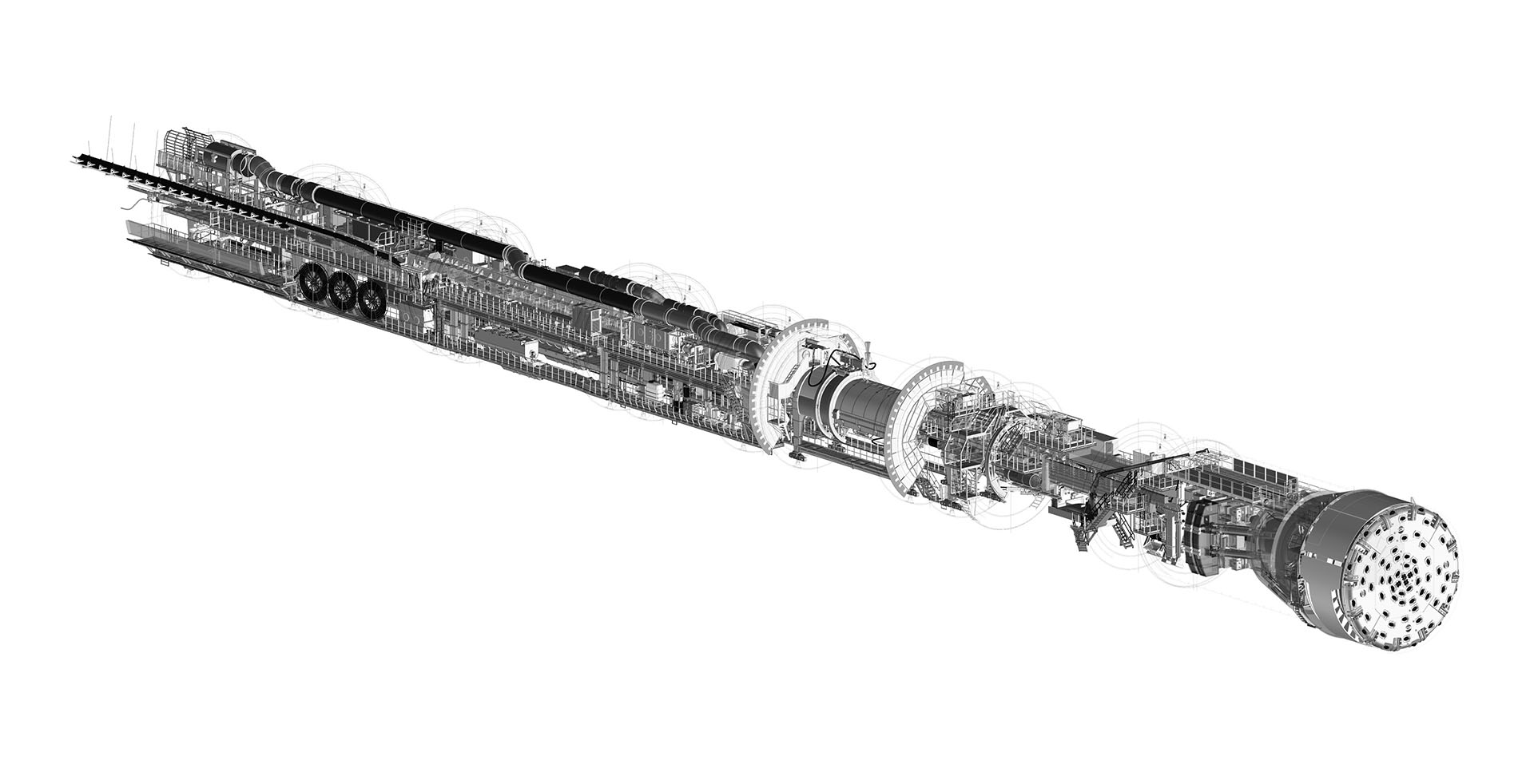 Nachlaufsysteme sind direkt an den Tunnelvortrieb gekoppelt und unterstützen logistisch den Betrieb der Vortriebsmaschine. Die Leistungsfähigkeit einer Anlage entscheidet sich in ihrer Logistik. Das Nachlaufsystem umfasst nebst der Stahlbaukonstruktion auch Förderbänder, Krananlagen, Materialtransporteinrichtungen und ist Träger für die komplette Energieversorgung. Ergonomische Arbeitsplätze sowie geradlinige Gehwege zeichnen eine sichere Anlage aus.